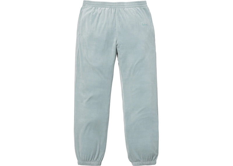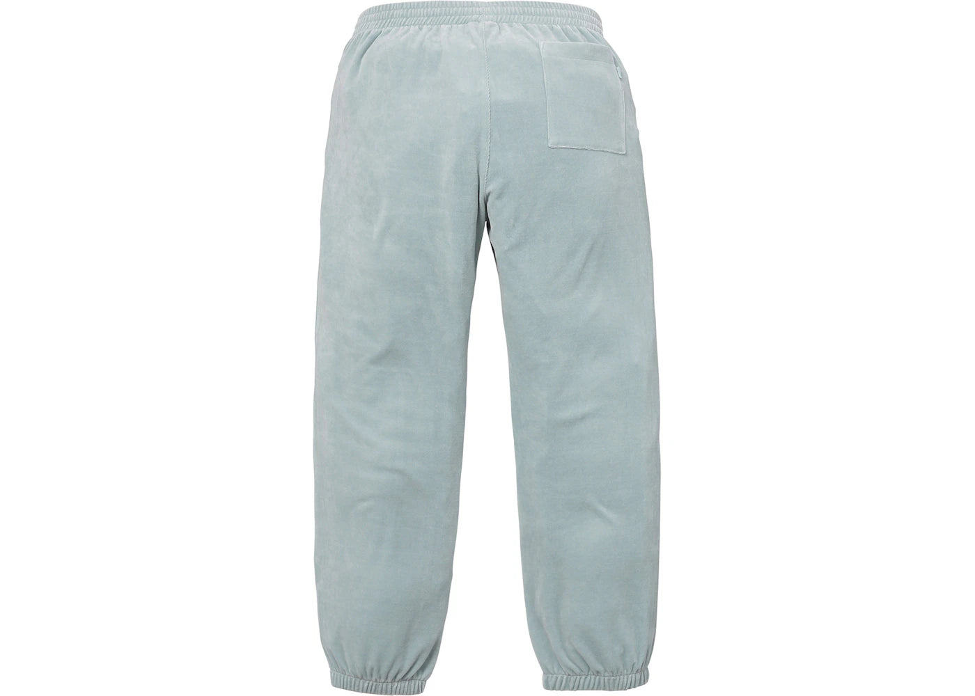 The Supreme Velour Warm Up Pant Light Blue is now available at Side Kicks!