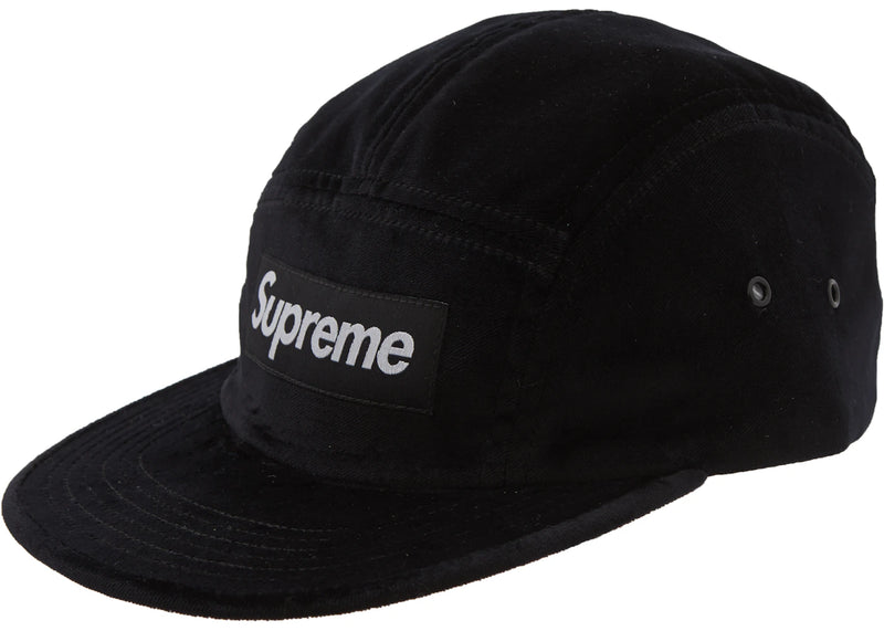 The Supreme Velvet Camp Cap Black is now available at Side Kicks!