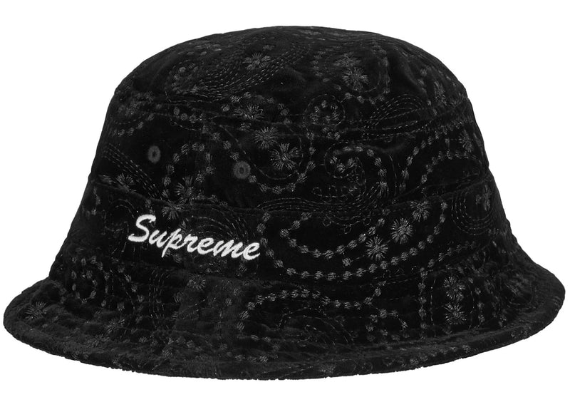 The Supreme Velvet Paisley Boonie Black is now available at Side Kicks!