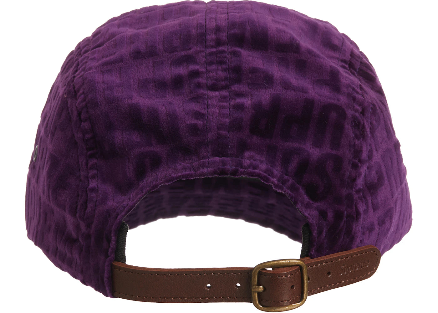 The Supreme Velvet Pattern Camp Cap Purple is now available at Side Kicks!