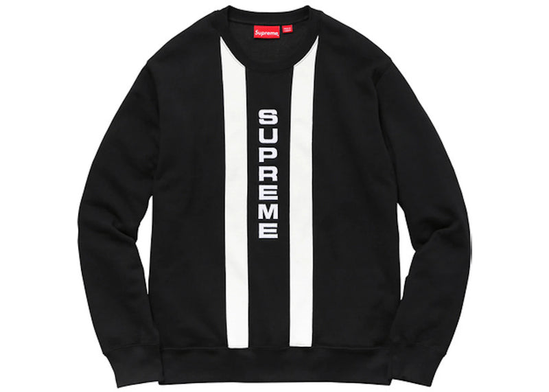 The Supreme Vertical Logo Panel Crewneck Black is now available at Side Kicks!