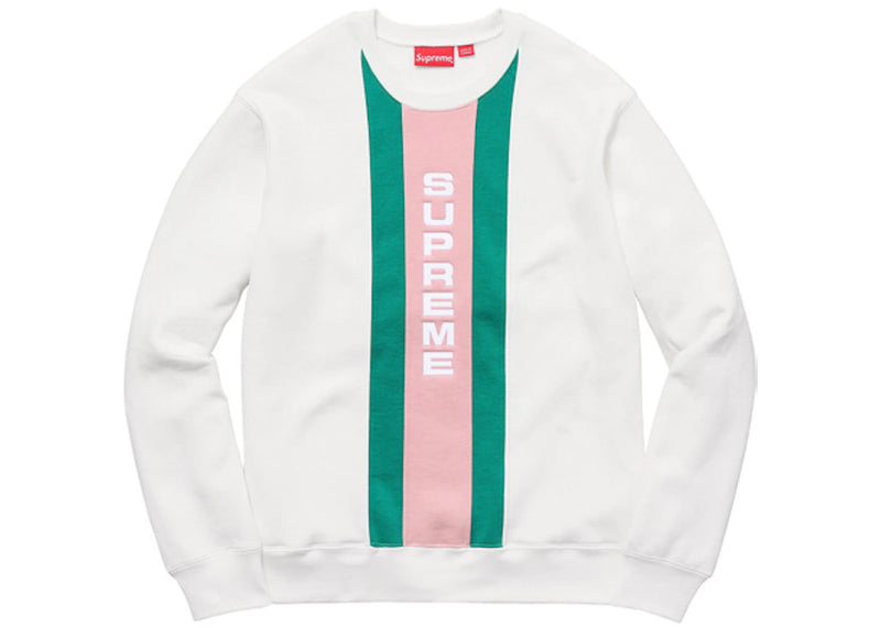 The Supreme Vertical Logo Panel Crewneck White is now available at Side Kicks!