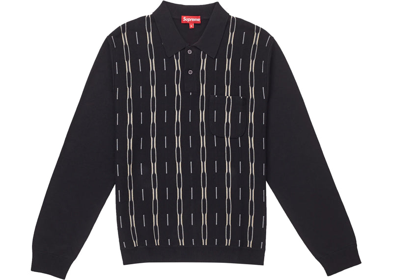 The Supreme Vertical Stripe Knit L/S Polo Black is now available at Side Kicks!