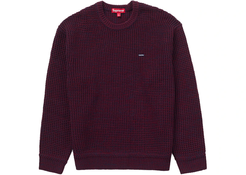 The Supreme Waffle Small Box Sweater Burgundy Melange is now available at Side Kicks!