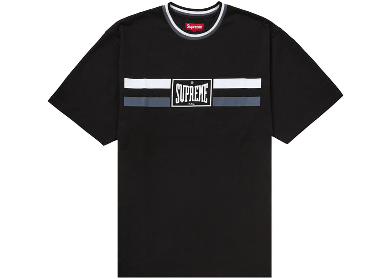 The Supreme Warm Up Stripe S/S Top Black is now available at Side Kicks!
