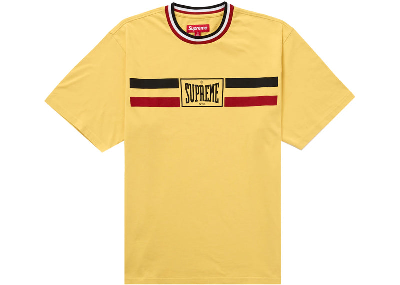 The Supreme Warm Up Stripe S/S Top Yellow is now available at Side Kicks!