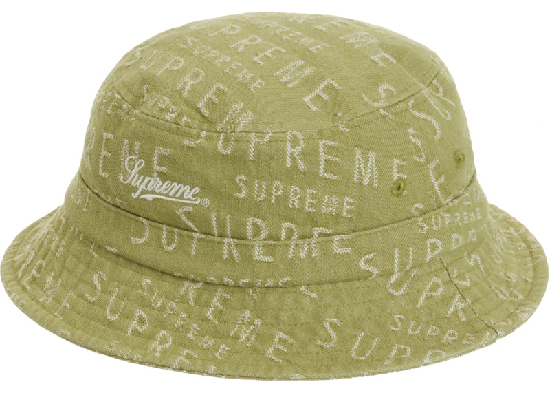 The Supreme Warp Jacquard Logos Denim Crusher Sage is now available at Side Kicks!
