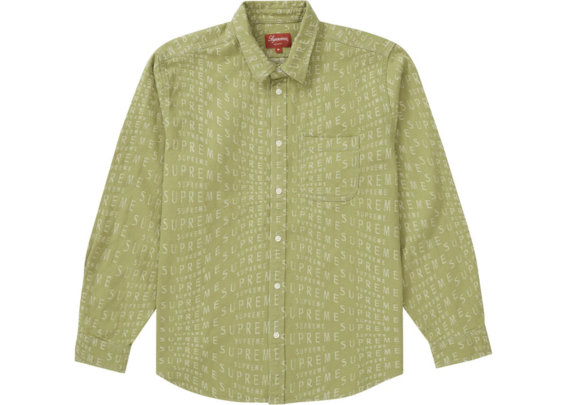 The Supreme Warp Jacquard Logos Denim Shirt Sage is now available at Side Kicks!