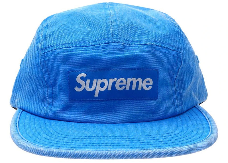 The Supreme Washed Canvas Camp Cap Blue is now available at Side Kicks!