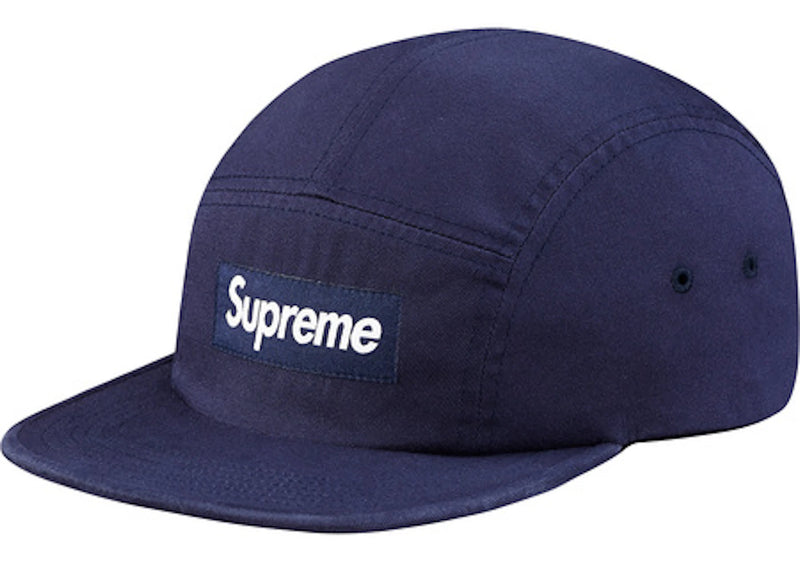 The Supreme Washed Chino Twill Camp Cap Navy is now available at Side Kicks!