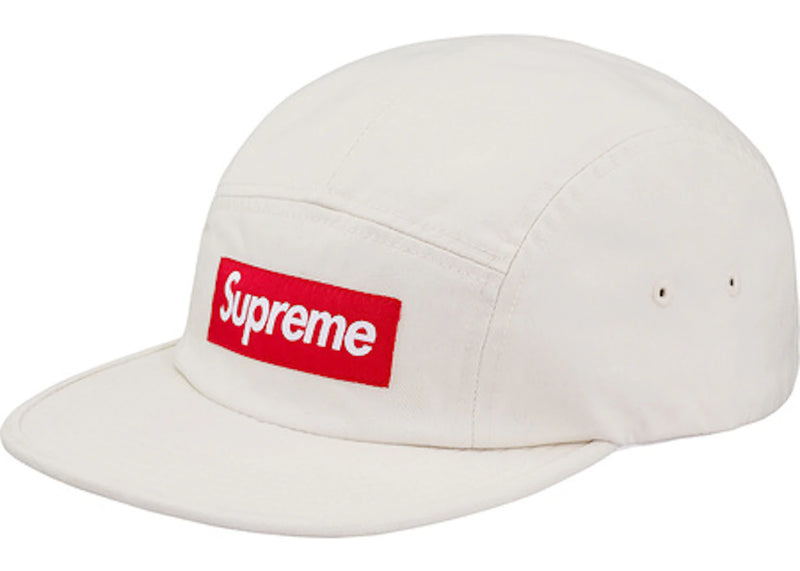 The Supreme Washed Chino Twill Camp Cap (SS18) Stone is now available at Side Kicks!