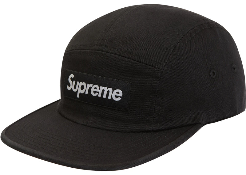 The Supreme Washed Chino Twill Camp Cap (SS19) Black is now available at Side Kicks!