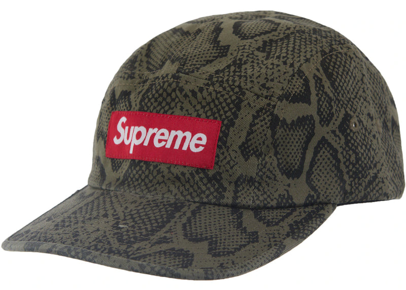 The Supreme Washed Chino Twill Camp Cap (SS24) Snake is now available at Side Kicks!