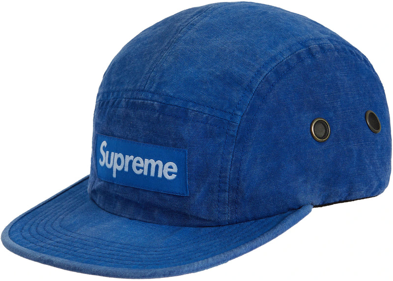 The Supreme Washed Linen Camp Cap Navy is now available at Side Kicks!