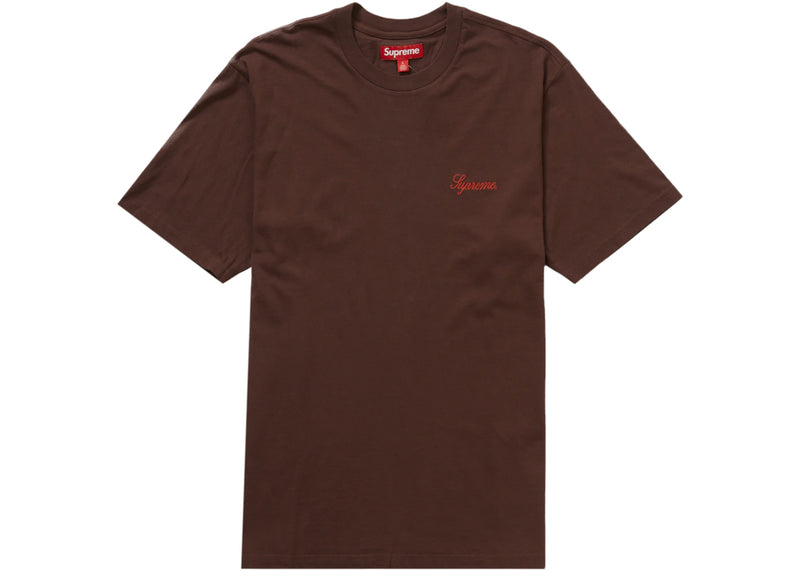The Supreme Washed Script S/S Top (FW23) Dark Brown is now available at Side Kicks!