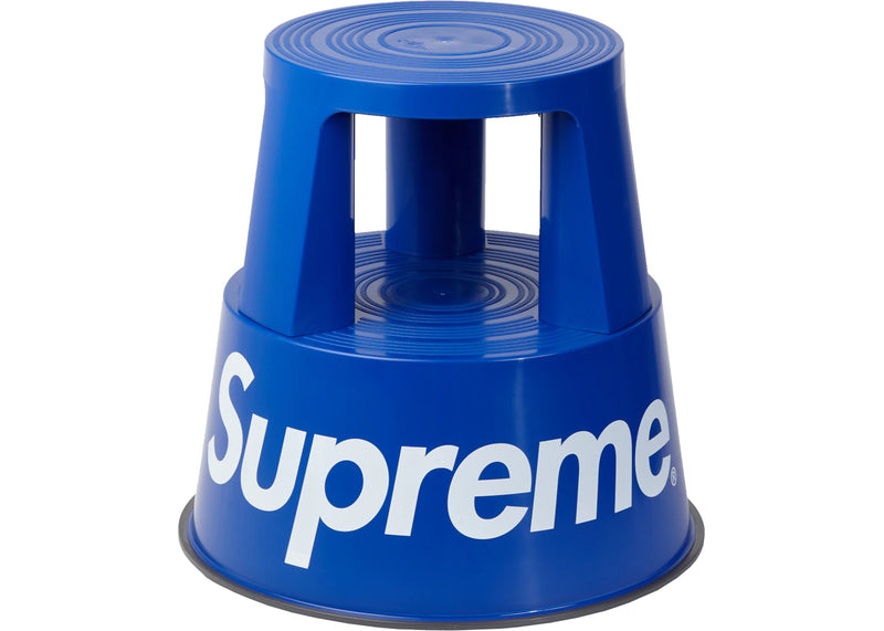 The Supreme Wedo Step Stool features a recyclable shatterproof blue plastic construction with Supreme branding along the bottom edge. It stands at a height of just under 1.5 feet for...