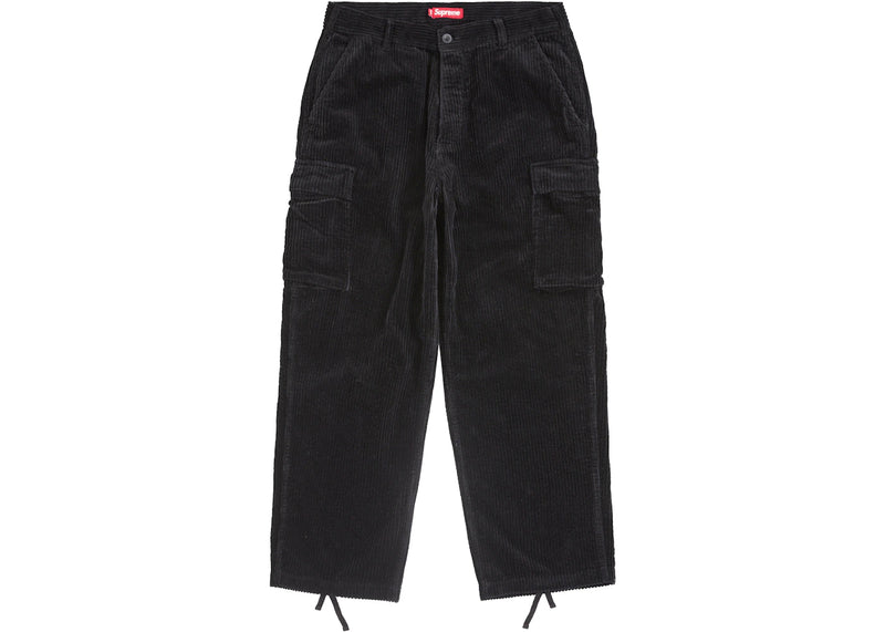 The Supreme Wide Wale Corduroy Cargo Pant (FW24) Black is now available at Side Kicks!
