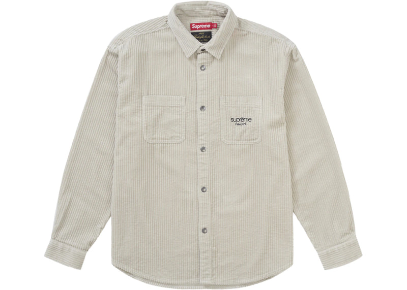 The Supreme Wide Wale Corduroy Snap Shirt Natural is now available at Side Kicks!
