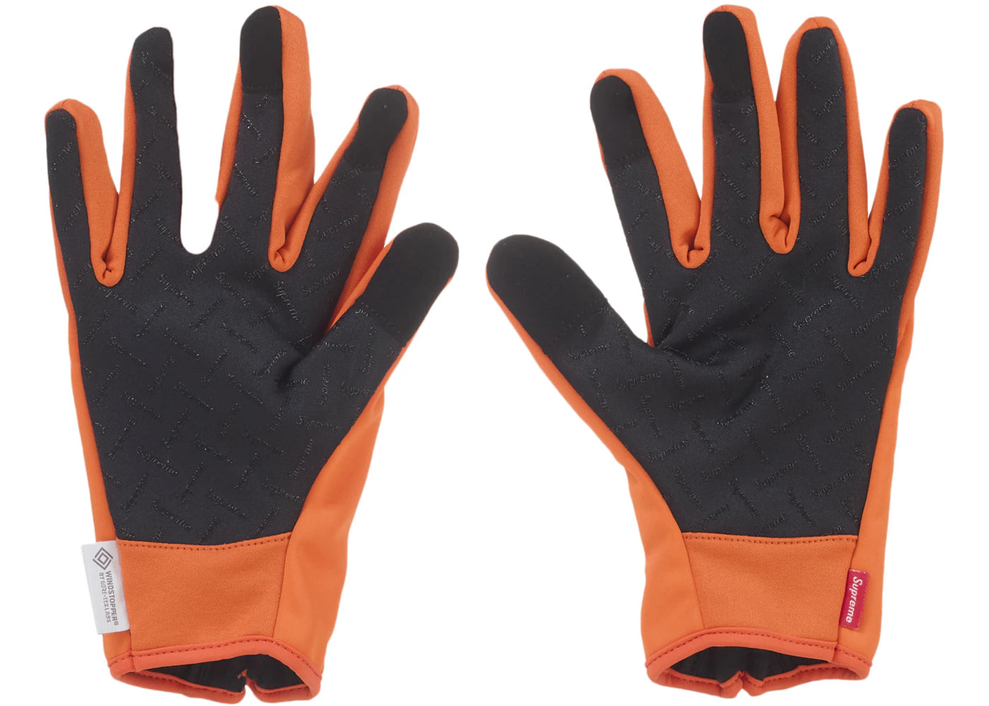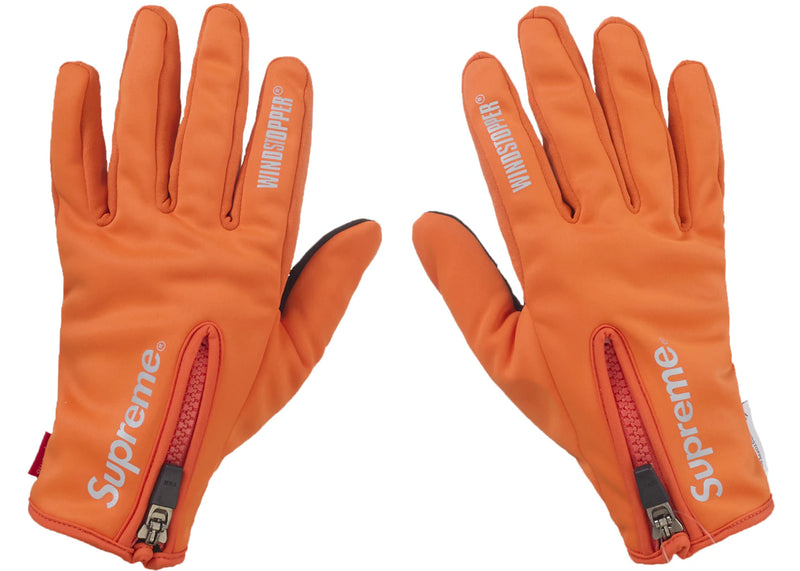 The Supreme WINDSTOPPER Zip Gloves Orange is now available at Side Kicks!