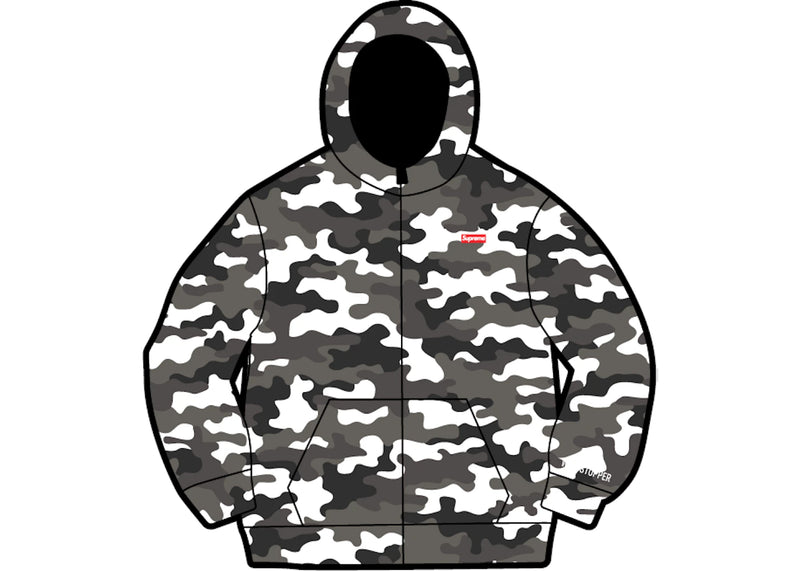 The Supreme WINDSTOPPER Zip Up Hooded Sweatshirt Snow Camo is now available at Side Kicks!