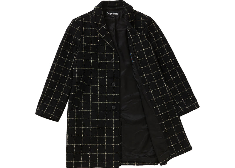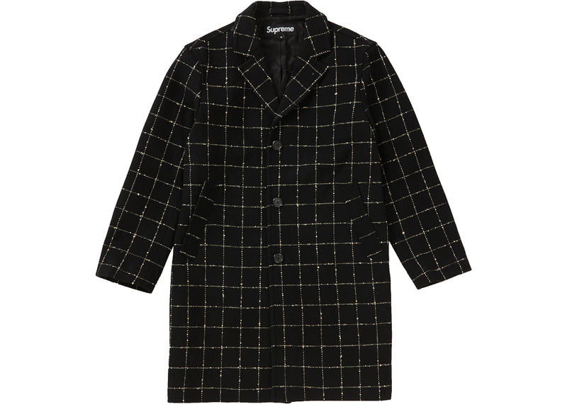 The Supreme Wool Windowpane Overcoat Black is now available at Side Kicks!