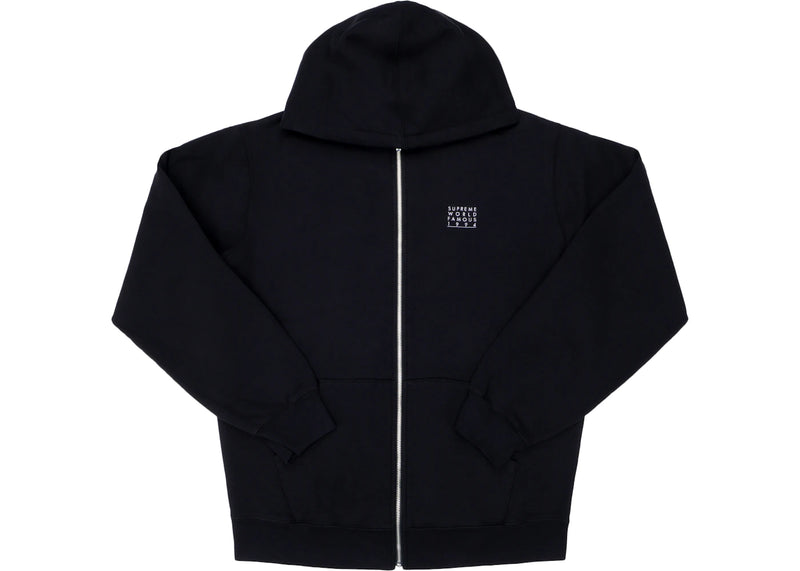 The Supreme World Famous Zip Up Hooded Sweatshirt Black is now available at Side Kicks!