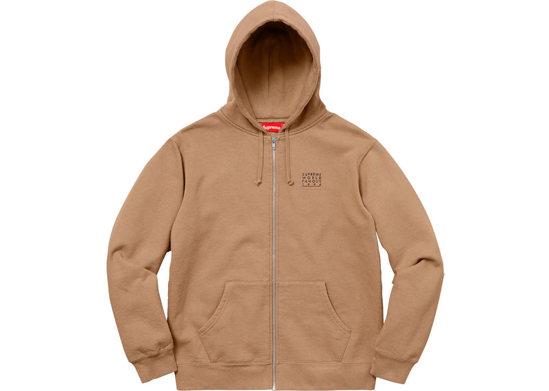 The Supreme World Famous Zip Up Hooded Sweatshirt Light Brown is now available at Side Kicks!