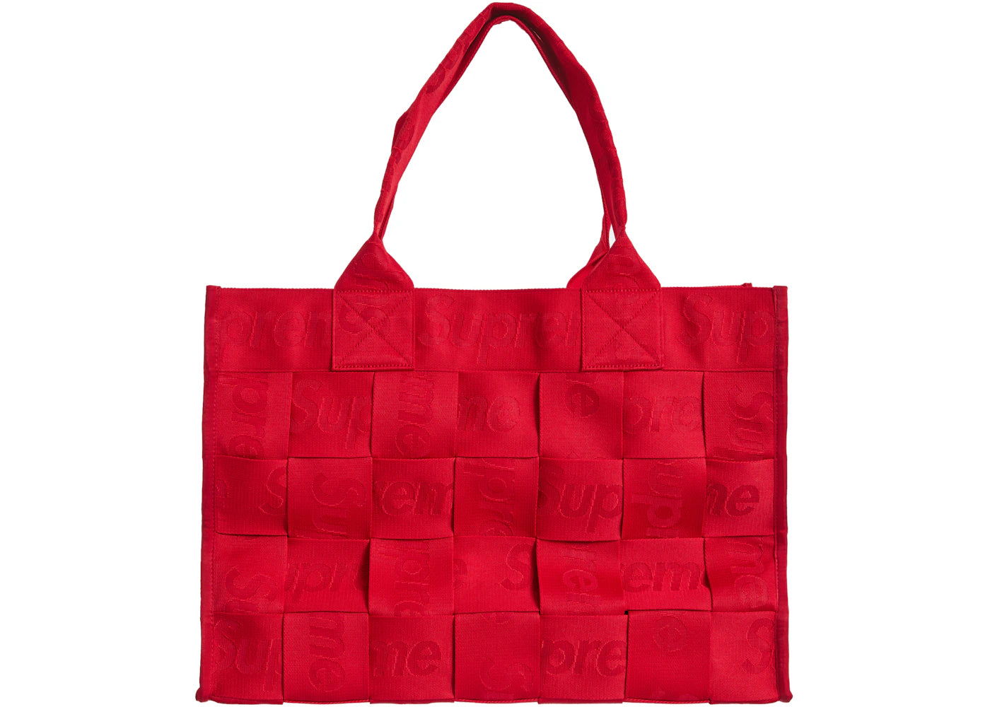 The Supreme Woven Large Tote Bag Red is now available at Side Kicks!