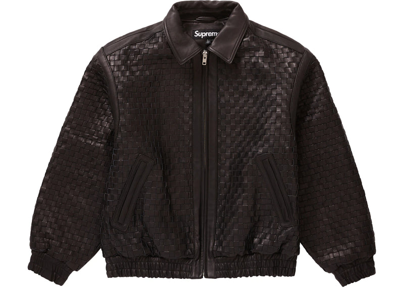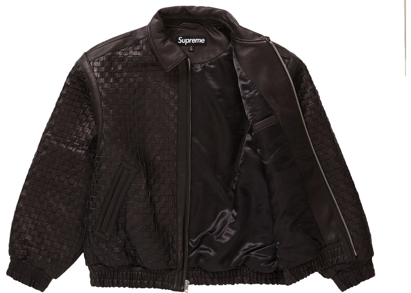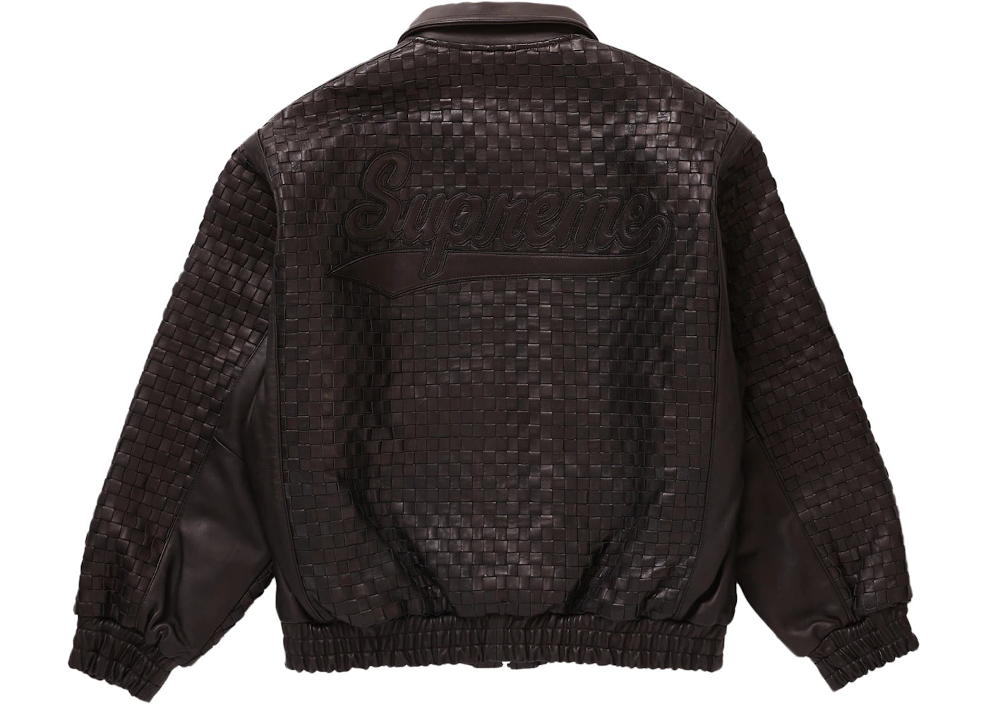The Supreme Woven Leather Varsity Jacket Black is now available at Side Kicks!