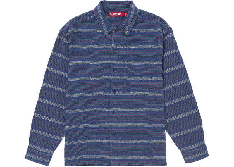 The Supreme Woven Stripe Shirt Blue is now available at Side Kicks!