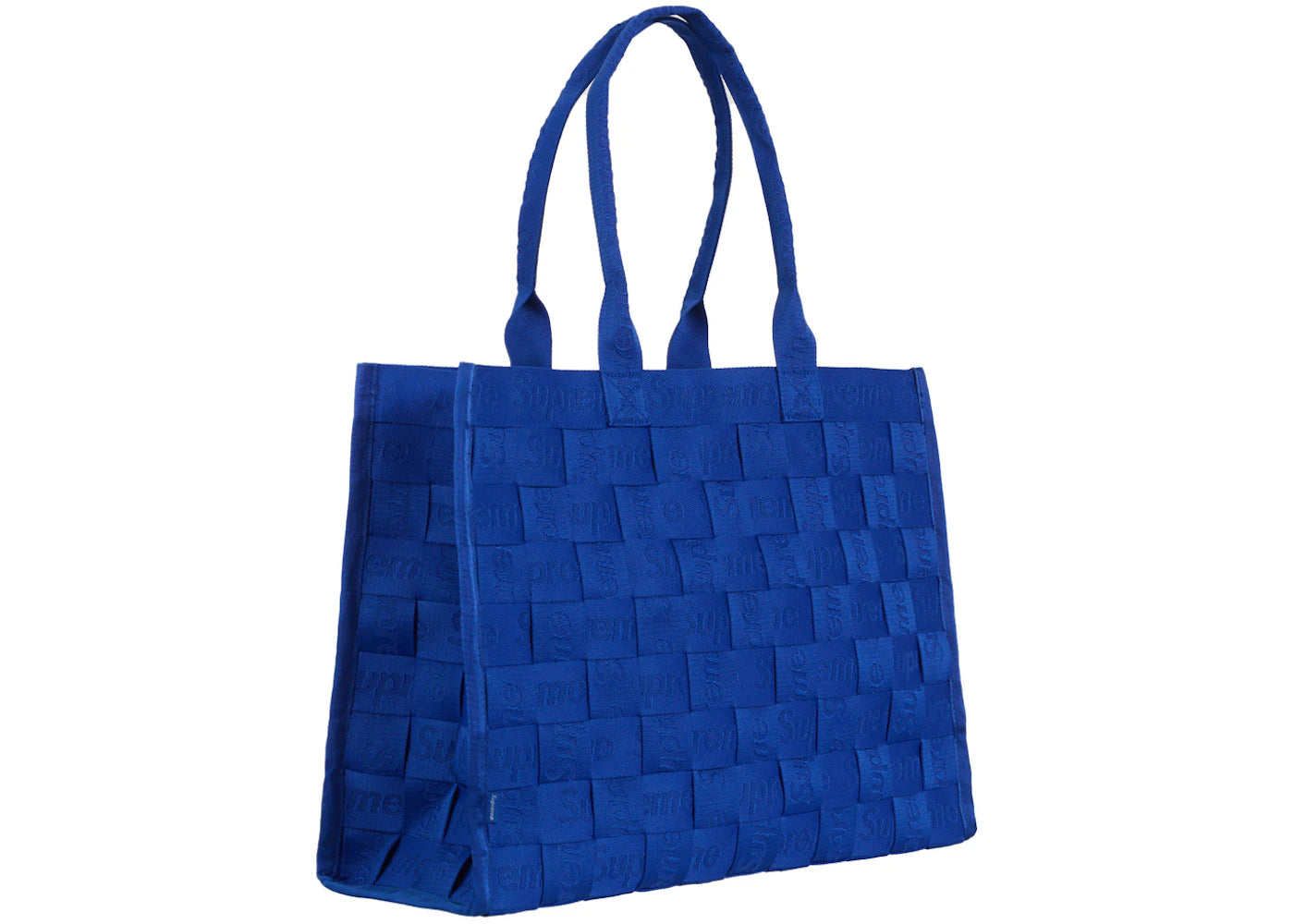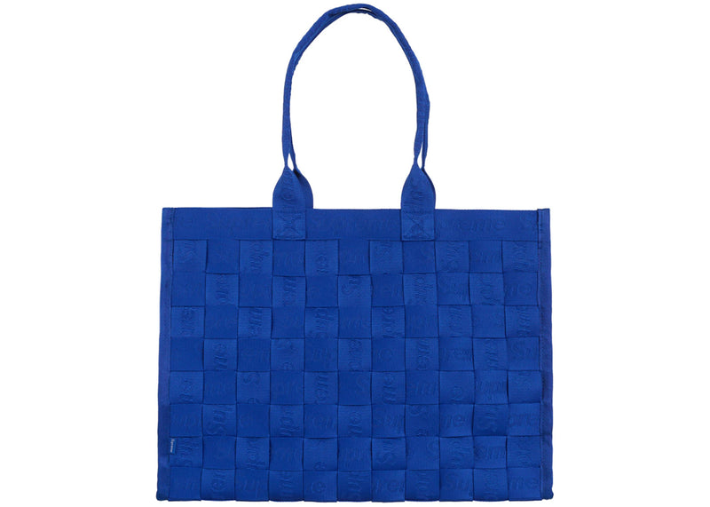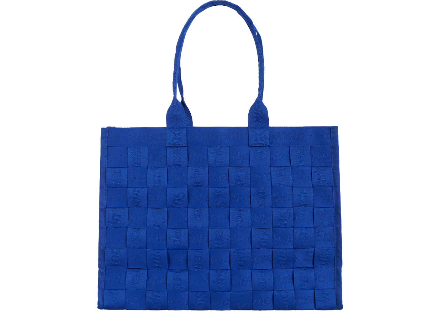 The Supreme Woven Tote Royal is now available at Side Kicks!