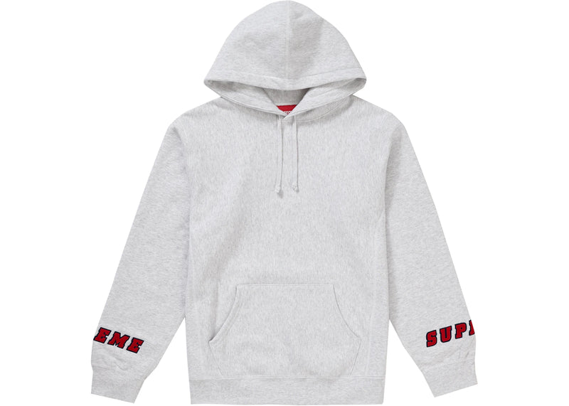 The Supreme Wrist Logo Hooded Sweatshirt Ash Grey is now available at Side Kicks!