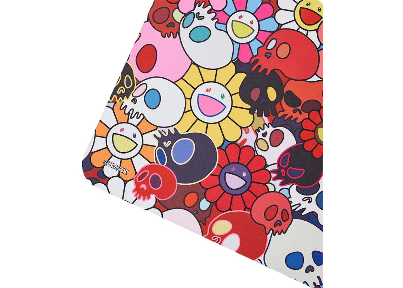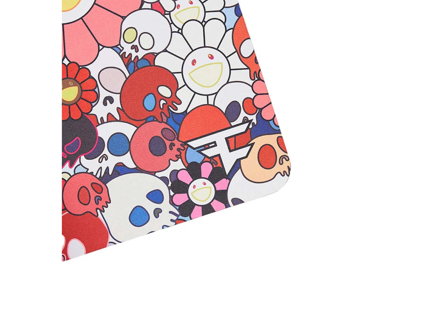 FaZe Clan teamed up with world renowned artist Takashi Murakami for a new collection for the Summer of 2021. The duo released their collection that features mousepads and gaming jerseys exclusively through the FaZe Clan website and NTWRK App. The 2XL Mousepad measures 35.43 x 15.75 inches and depicts a classic Takashi Murakami print of flowers and skulls with a FaZe logo in the lower right corner.