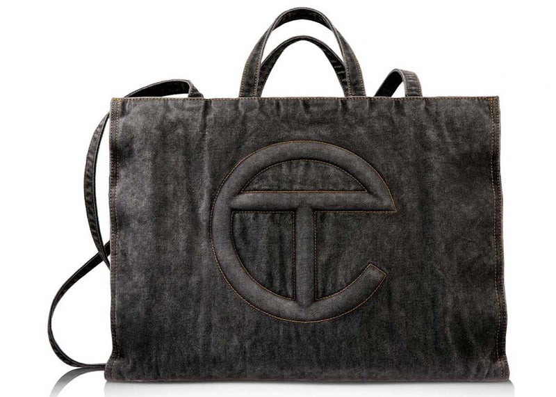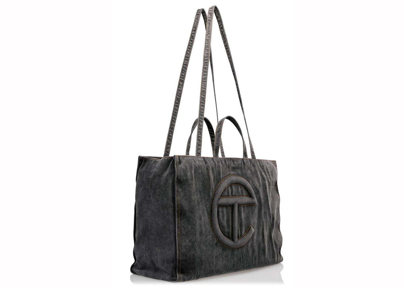 The Telfar Large Denim Shopping Bag Black is now available at Side Kicks!