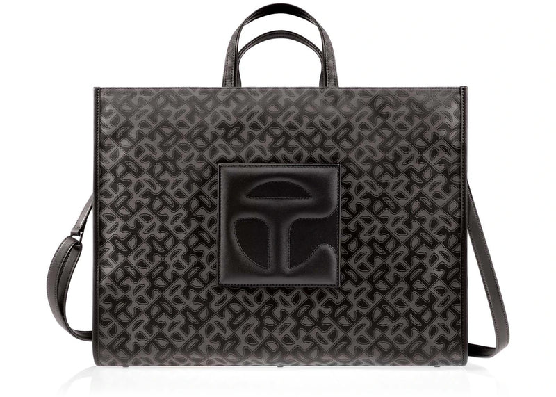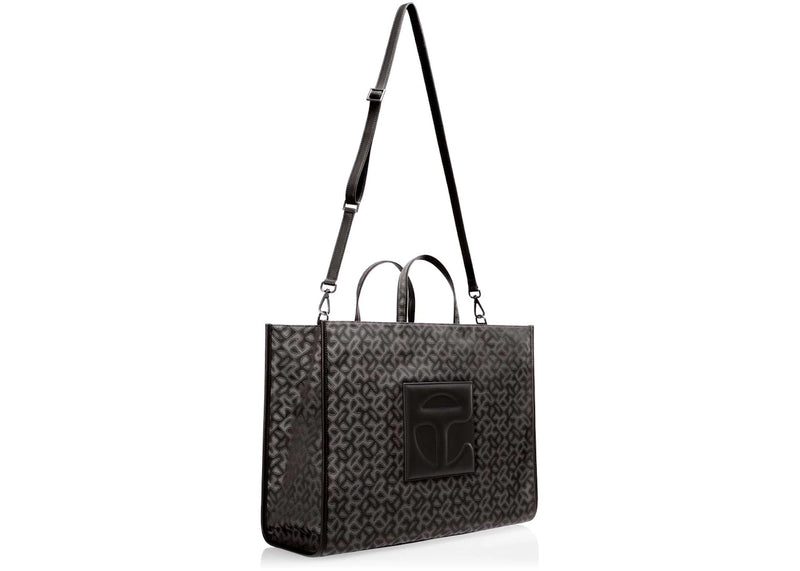 The Telfar Large Jacquard Shopper Black Monogram is now available at Side Kicks!