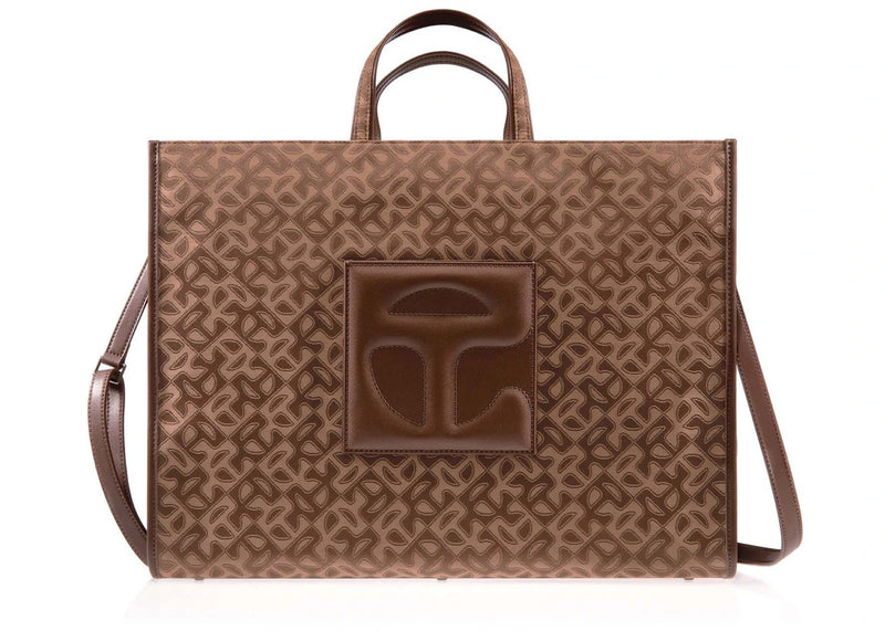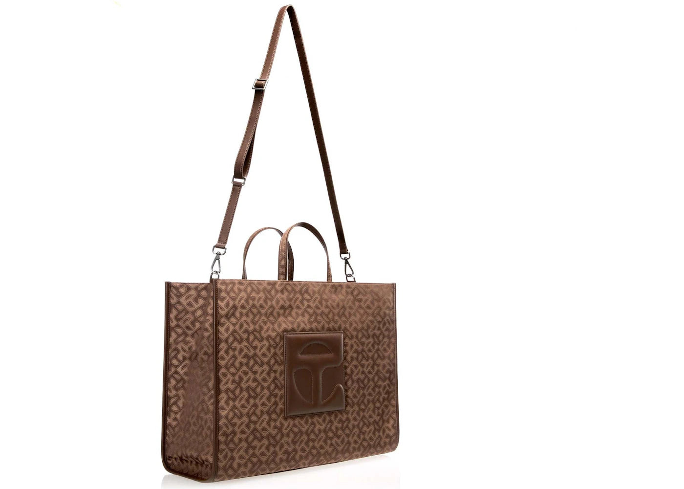 The Telfar Large Jacquard Shopper Tan Monogram is now available at Side Kicks!