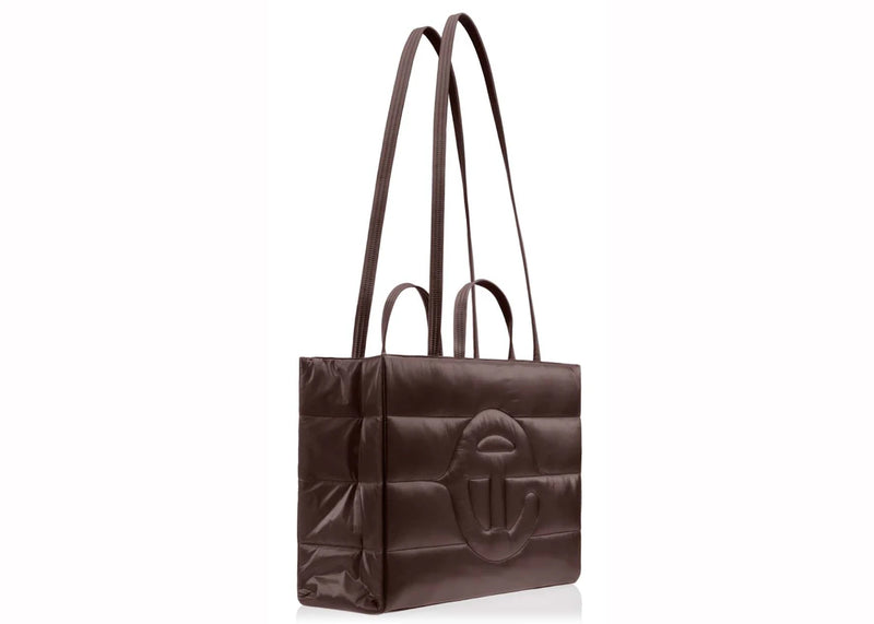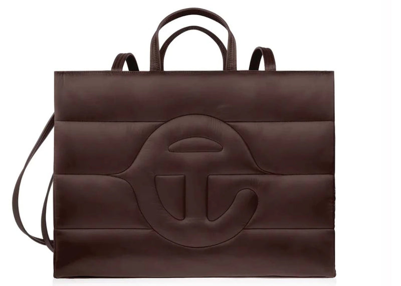 The Telfar Large Puff Shopper Chocolate is now available at Side Kicks!