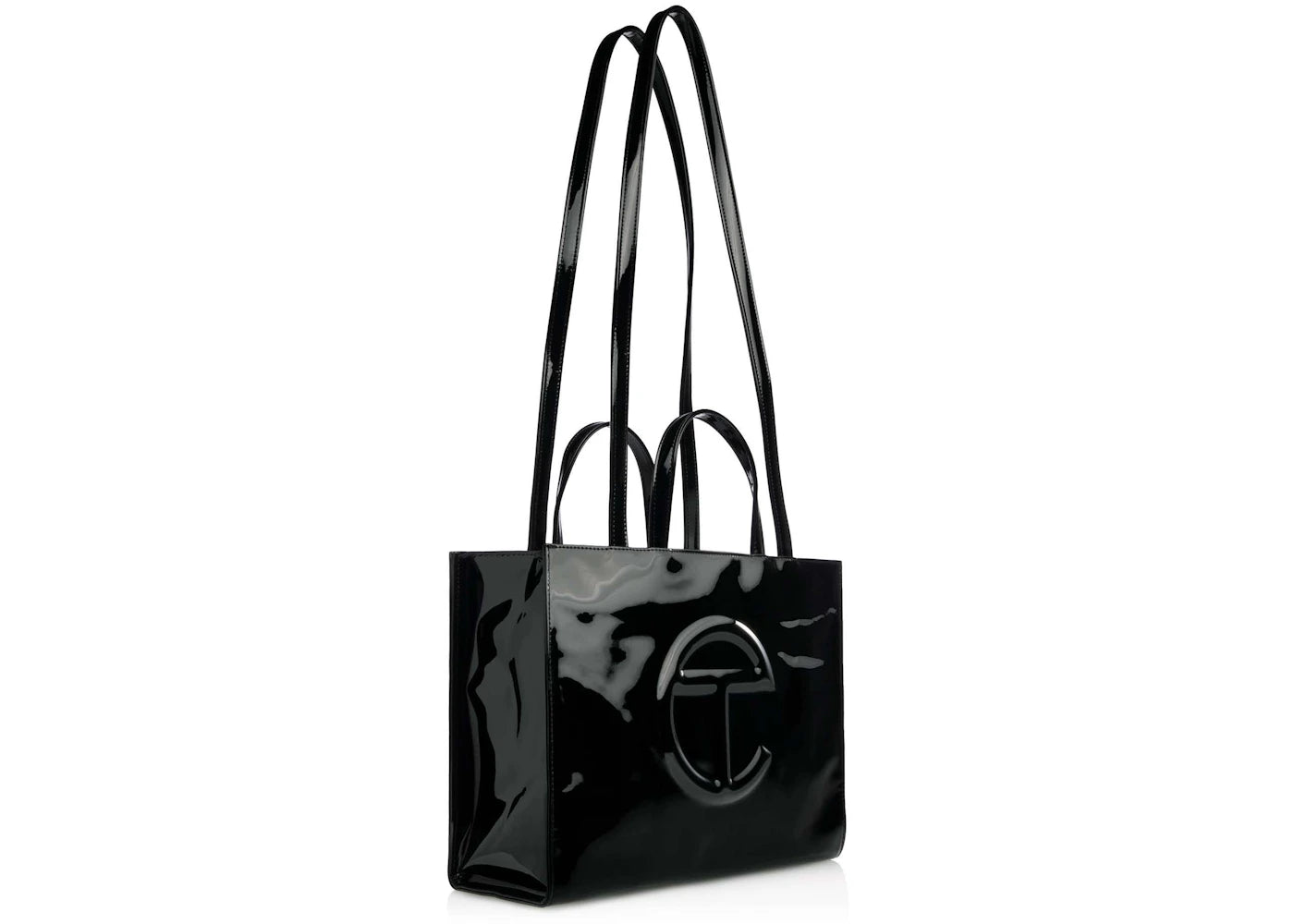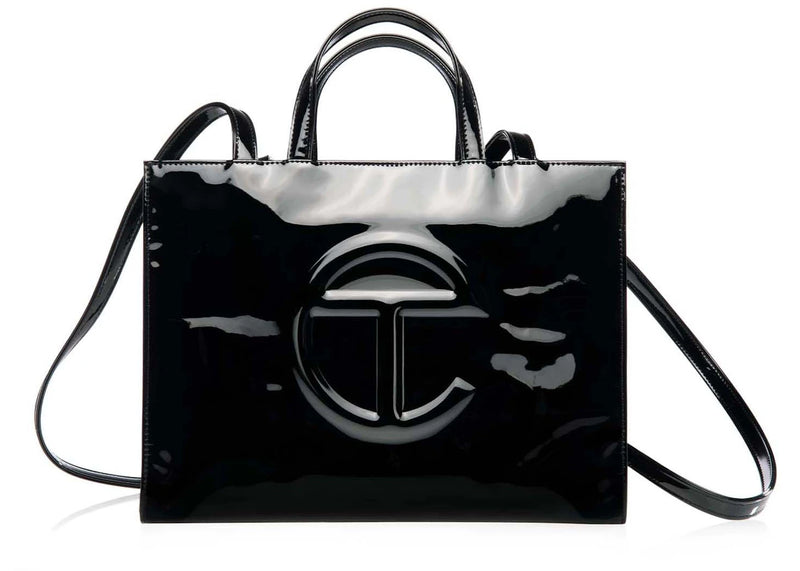 The Telfar Medium Patent Shopping Bag Black is now available at Side Kicks!