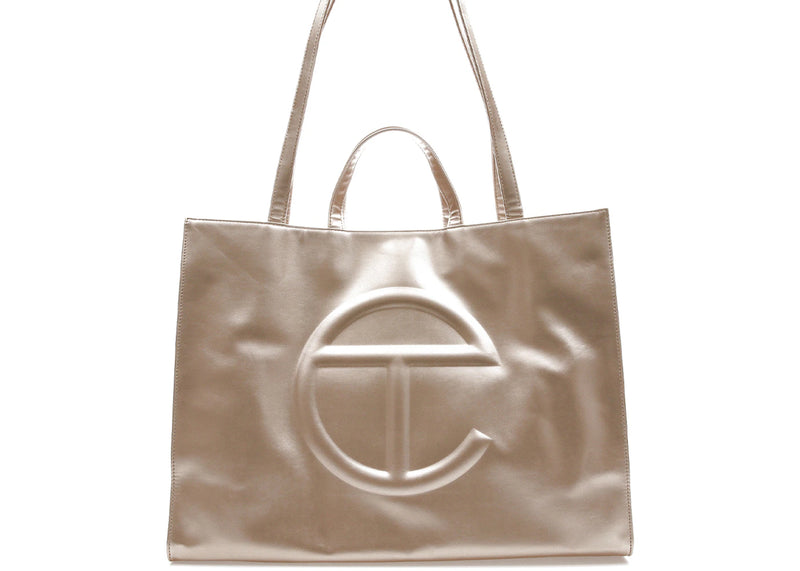 The Telfar Shopping Bag Large Gold is now available at Side Kicks!