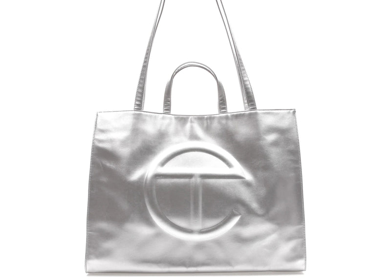 The Telfar Shopping Bag Large Silver is now available at Side Kicks!