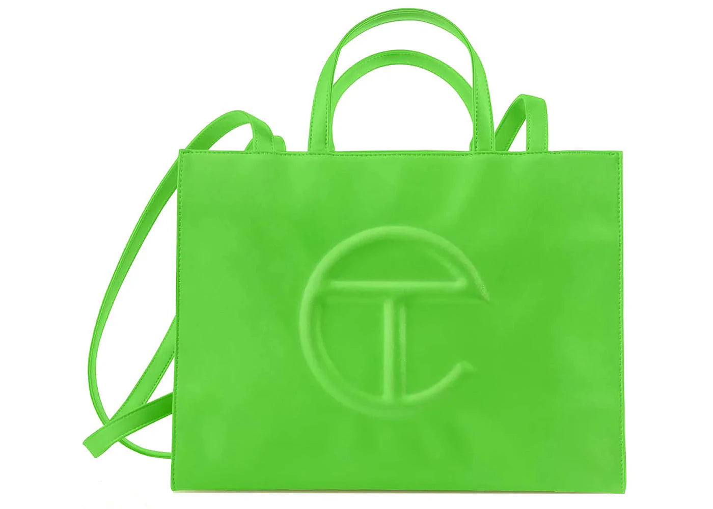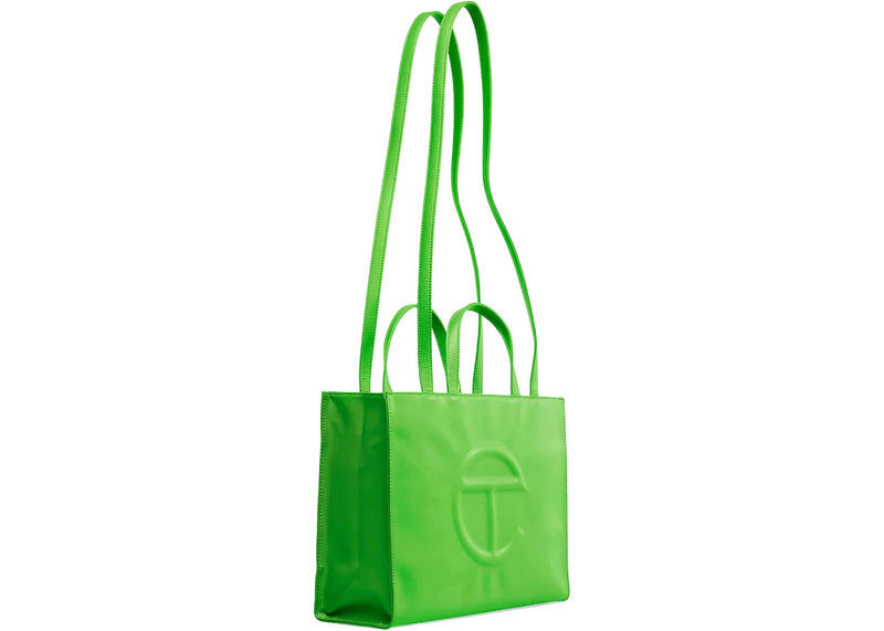 The Telfar Shopping Bag Medium Highlighter Green is now available at Side Kicks!