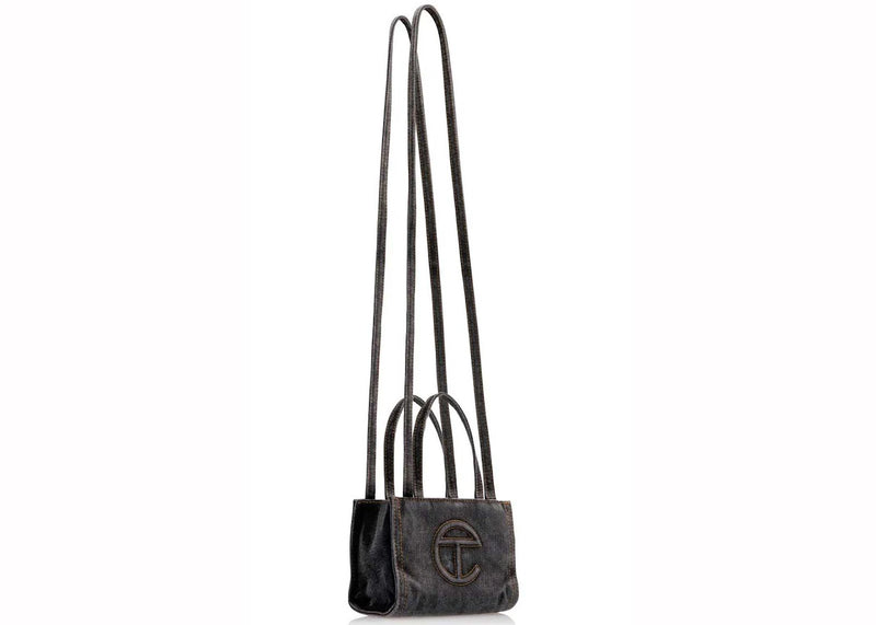 The Telfar Small Denim Shopping Bag Black is now available at Side Kicks!