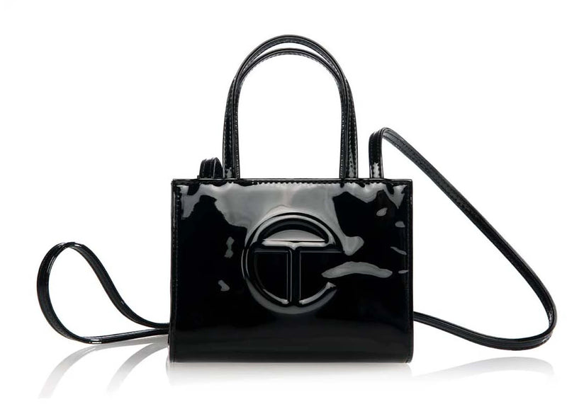 The Telfar Small Patent Shopping Bag Black is now available at Side Kicks!