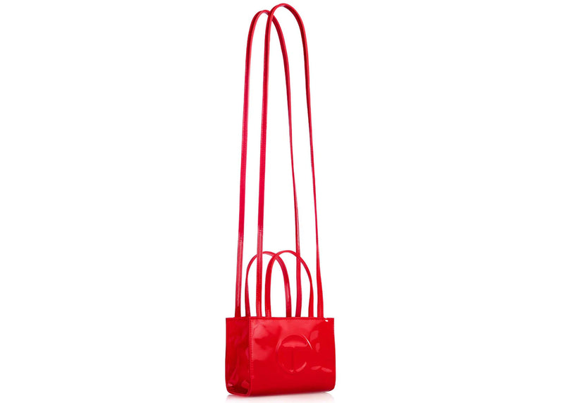 The Telfar Small Patent Shopping Bag Red is now available at Side Kicks!