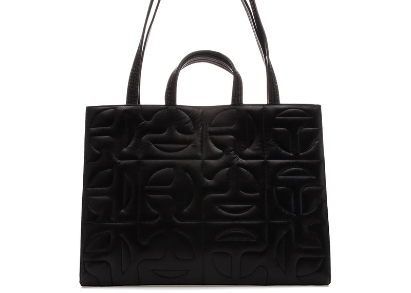 The Telfar x Moose Knuckles Leather Quilted Shopper Tote Large Black is now available at Side Kicks!