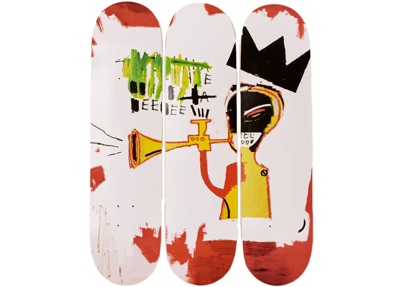 The The Skateroom x Jean-Michel Basquiat Trumpet 1984 Skateboard Deck (Set of 3) is now available at Side Kicks!