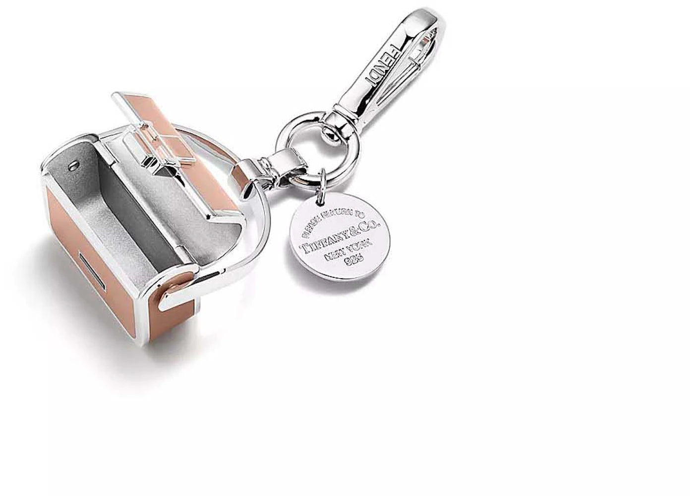Tiffany x FENDI Pico Baguette Charm in Sterling Silver with Pink Enamel Finish