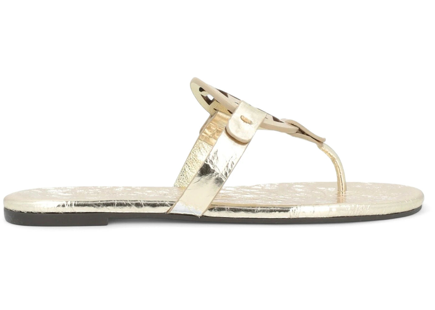 The Tory Burch Miller Soft Sandals Spark Gold (Women's) is now available at Side Kicks!
