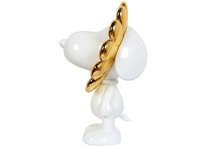 The ToyQube Snoopy Gloss White | Gold Chrome Sunflower Sculpture is now available at Side Kicks!