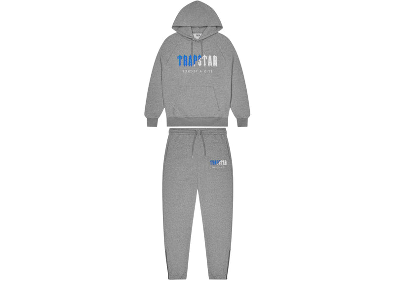 The Trapstar Chenille Decoded Hoodie Tracksuit Grey/Blue is now available at Side Kicks!